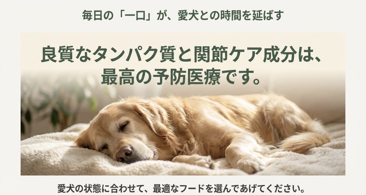 シニア犬の健康寿命は、飼い主さんが選ぶ「毎日のごはん」で大きく変わります。